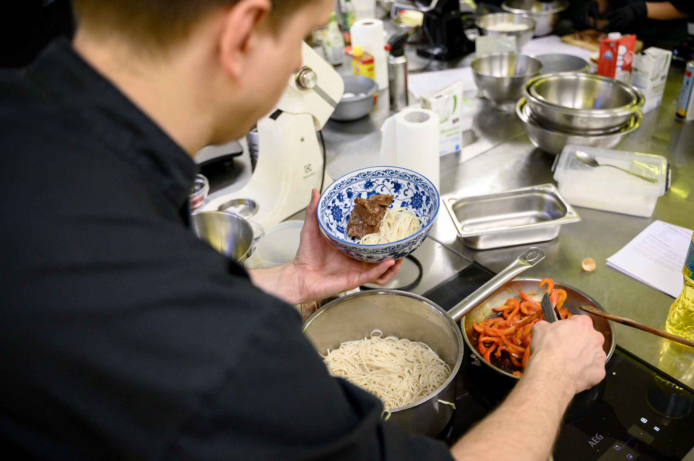 Young participants — children supported by the Children of Heroes Foundation — joined the chef in learning new cooking techniques and preparing two exquisite dishes: quick Peking duck and chocolate mousse infused with thyme and served with madeleine cookies.