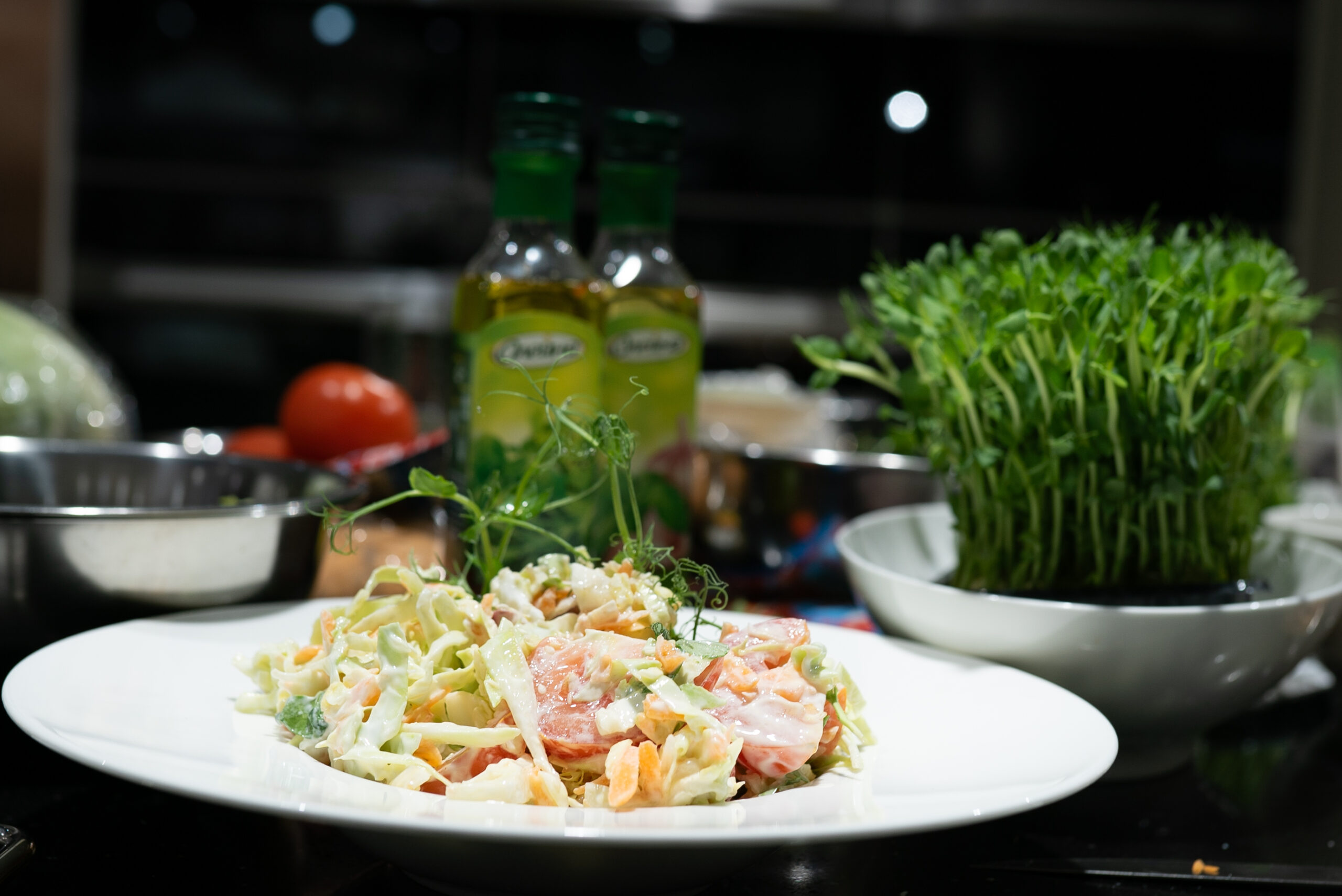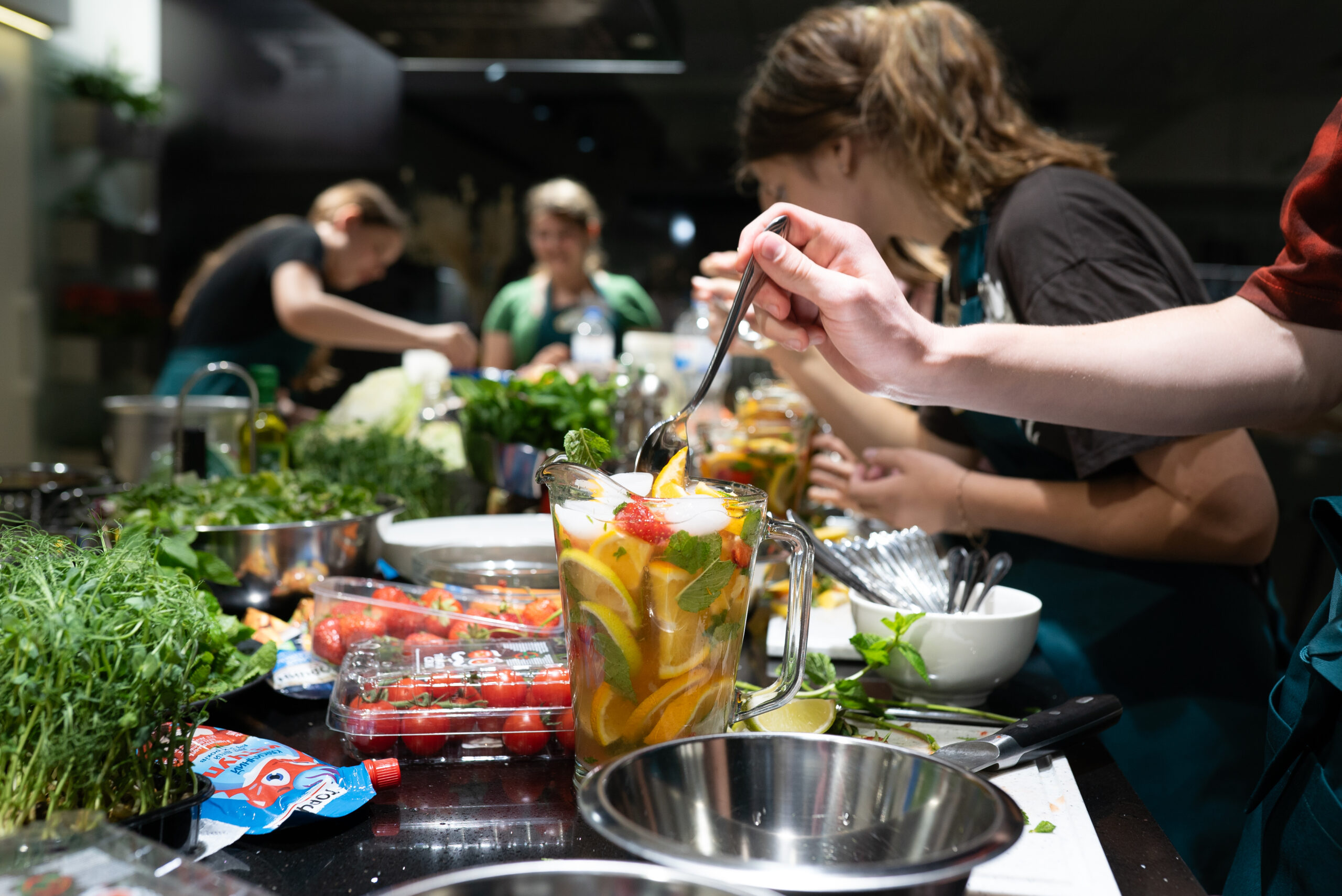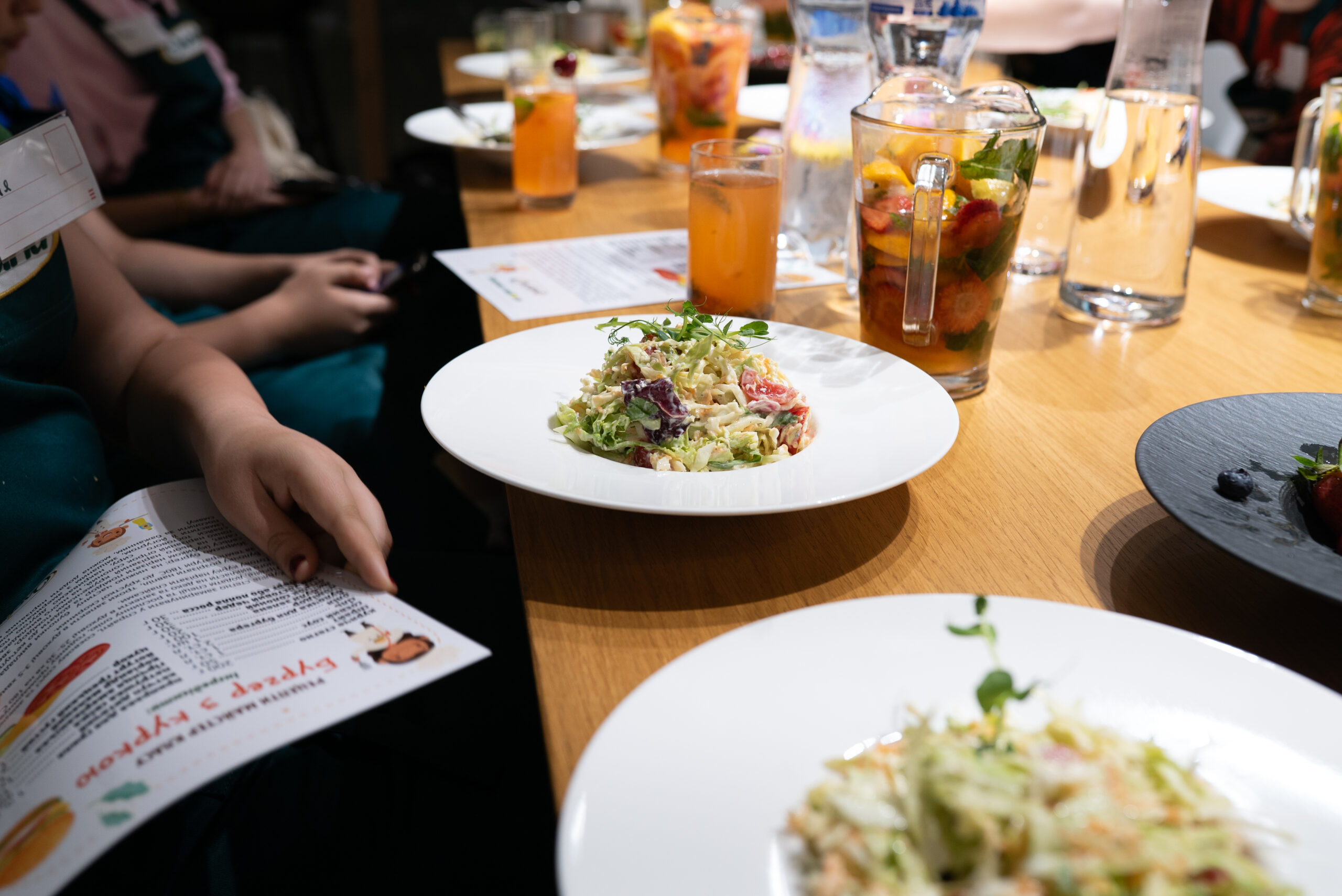 At the master class, the children prepared trendy and practical street-food dishes: a chicken burger, cole slaw salad, and lemonade.