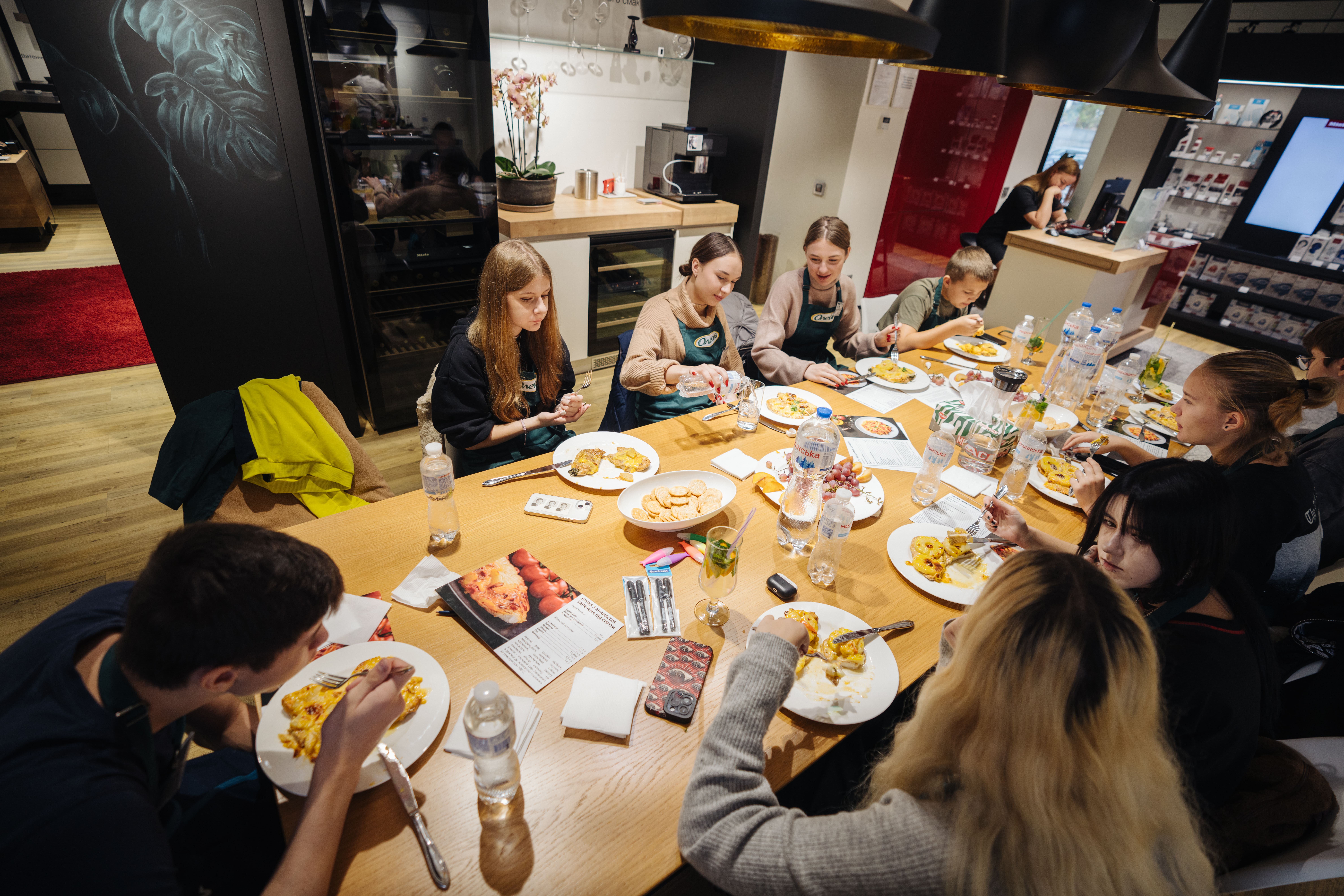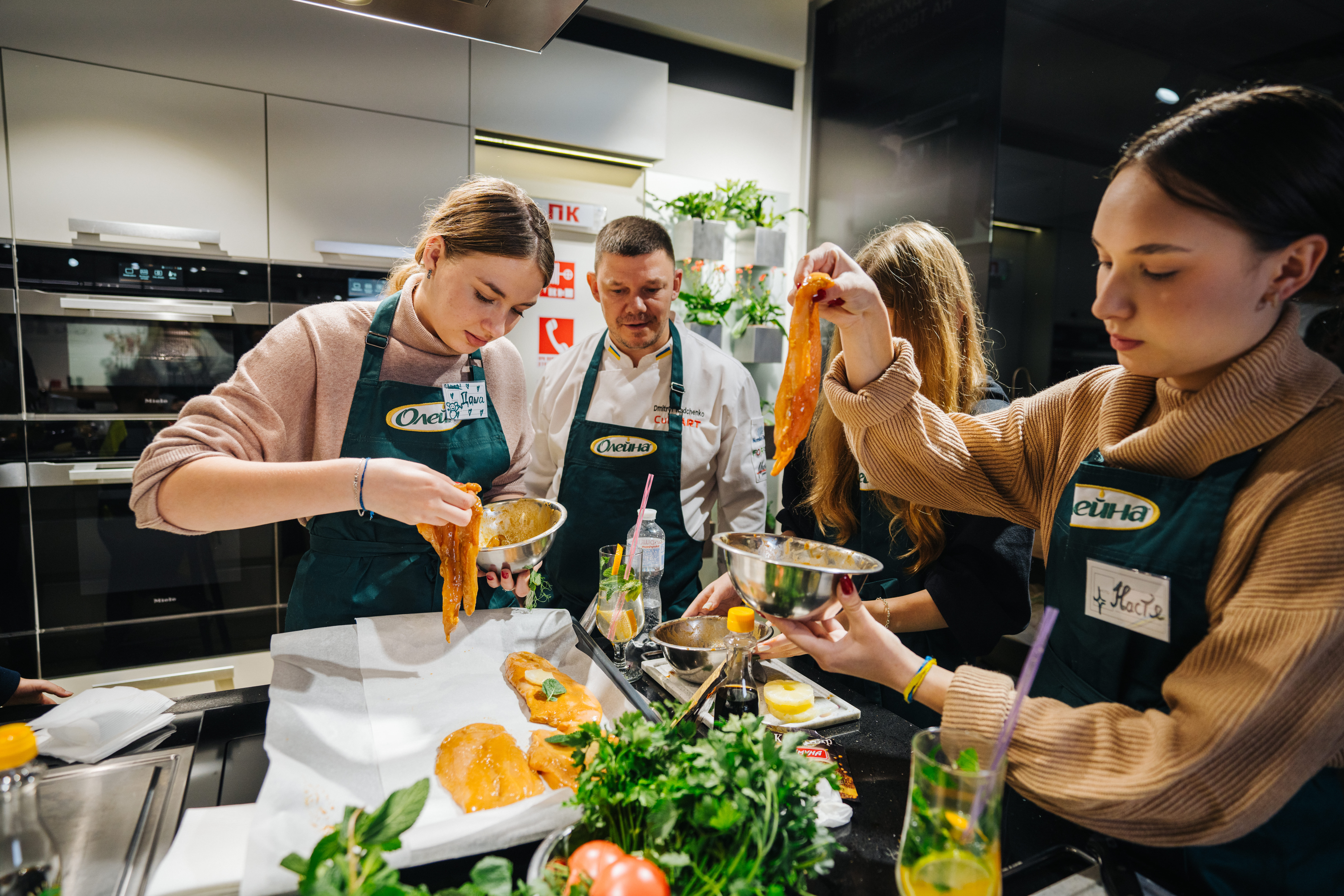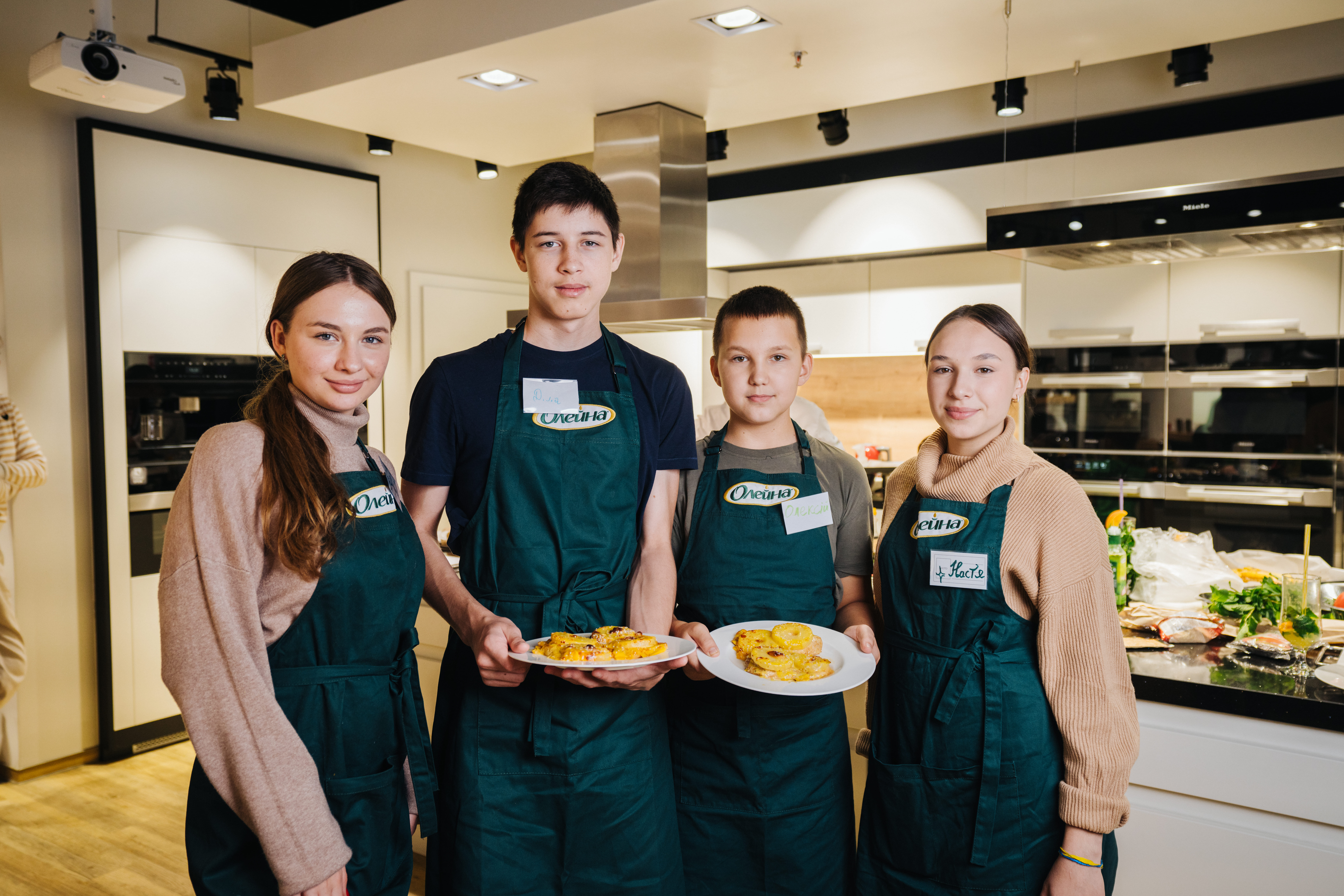 For almost six months, the wards of the “Children of Heroes” foundation have been learning to cook deliciously together with the “Oleina – for children. We cook with love” project. On October 12, young chefs gathered together for the eighth time in the Miele kitchen to learn how to cook something new under the guidance of a professional chef, chat and have a great time in the company of their peers. This time, the kids cooked chicken baked with cheese and pineapple, and pasta with barbecue sauce. Also, during the master class, all participants congratulated a newcomer – Andriy Ostapenko, who celebrated his 16th birthday on the same day.