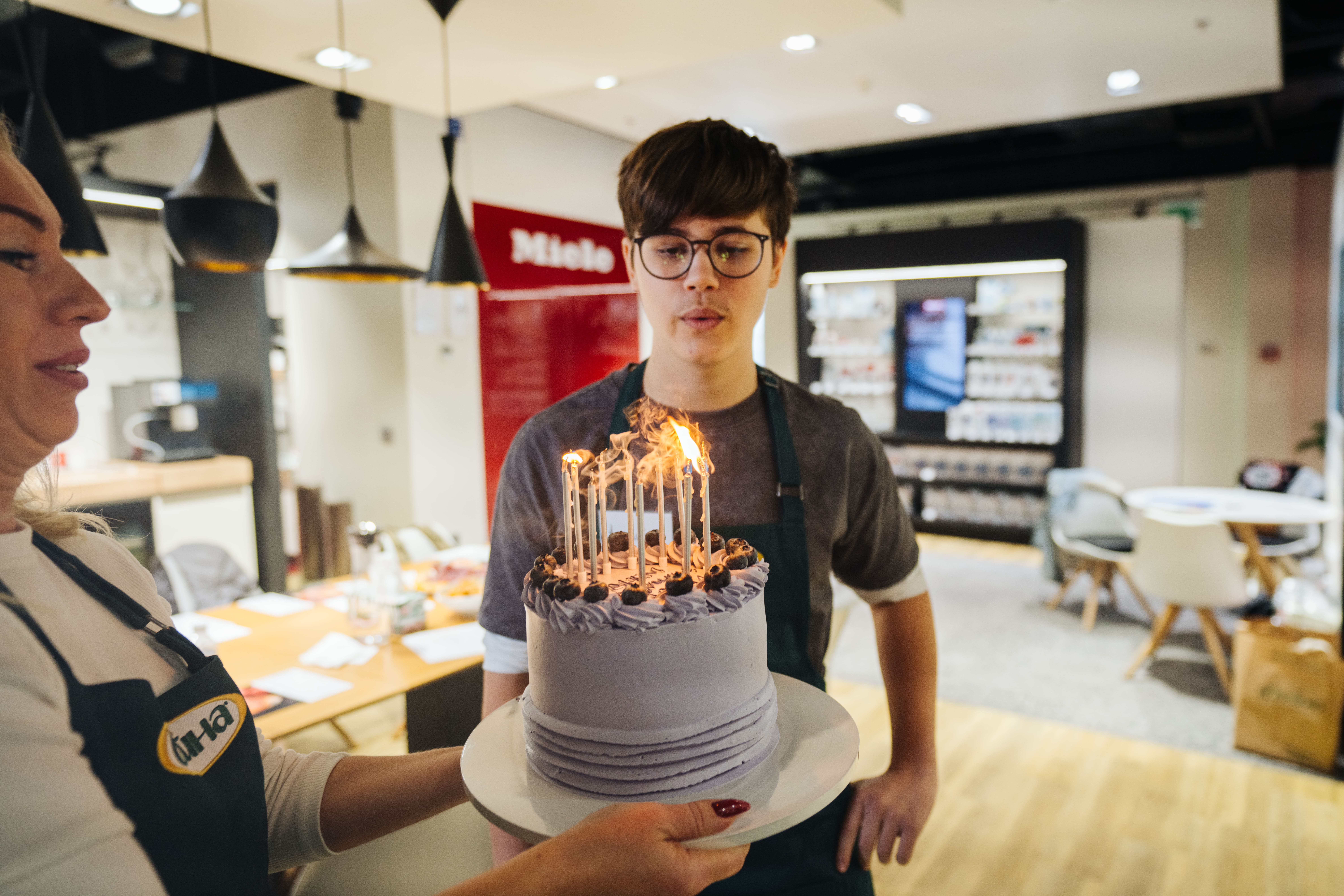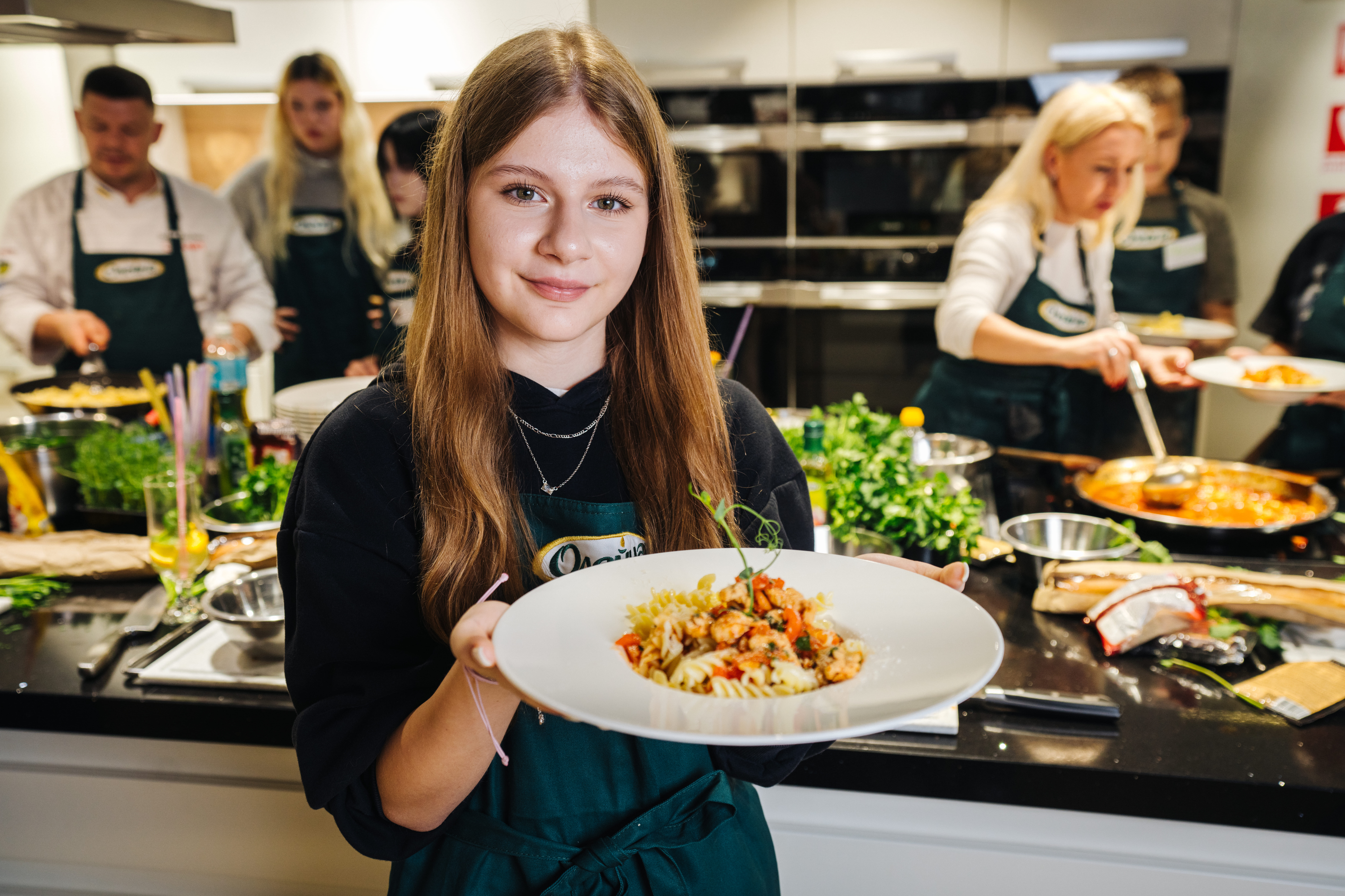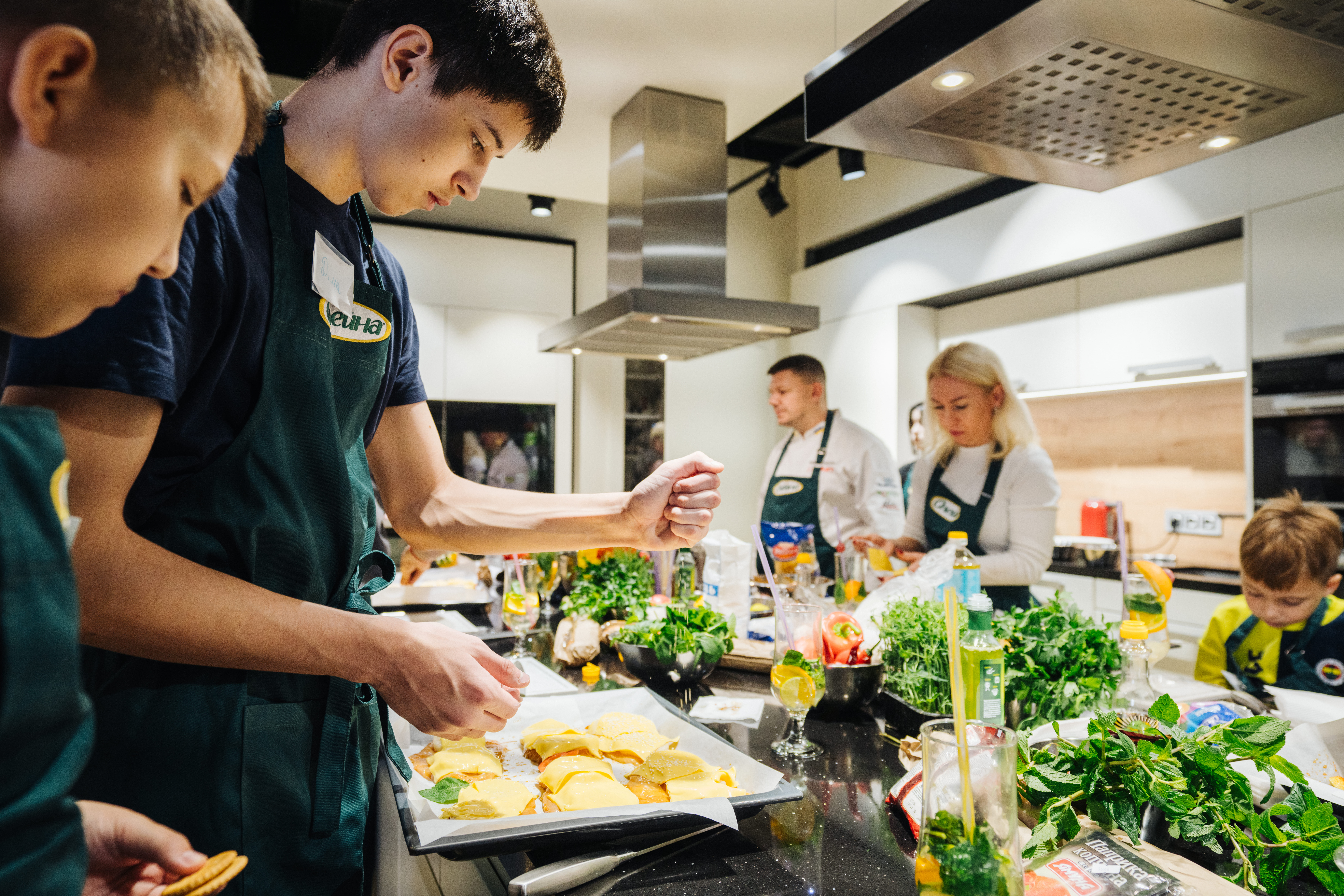 For almost six months, the wards of the “Children of Heroes” foundation have been learning to cook deliciously together with the “Oleina – for children. We cook with love” project. On October 12, young chefs gathered together for the eighth time in the Miele kitchen to learn how to cook something new under the guidance of a professional chef, chat and have a great time in the company of their peers. This time, the kids cooked chicken baked with cheese and pineapple, and pasta with barbecue sauce. Also, during the master class, all participants congratulated a newcomer – Andriy Ostapenko, who celebrated his 16th birthday on the same day.